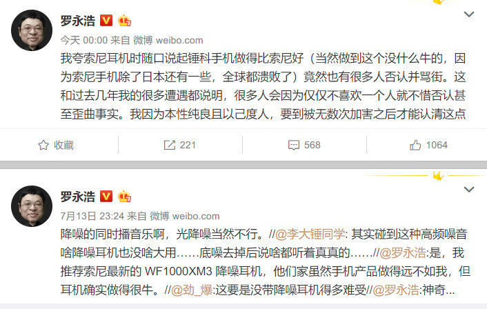近日锤子科技创世人罗永浩表示,索尼手机除了在日本市场还有一些,全球市场都溃败了,索尼手机做得远不如自己做得锤子手机,但是索尼的耳机做得确实非常厉害。虽然现在锤子科技的坚果手机迟迟没有发布新品,但是罗永浩依旧非常自信。