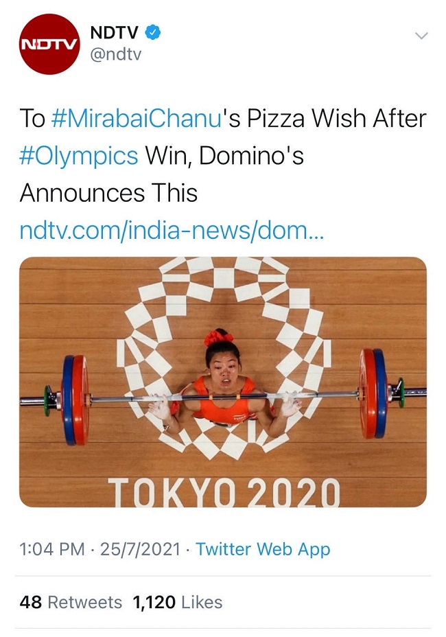 2018年,华帝在世界杯的对赌退款曾一度刷爆全网,并就此出圈,成为很多品牌的效仿对象。3年后,东京奥运会上,一位印度举重选手赛后采访时开玩笑说拿到银牌后最想做的事情就是吃一顿披萨,达美乐披萨火速反应,在Twitter上庆祝,并承诺为其提供终身免费披萨。而事实上,这件堪称今年奥运借势营销的经典案例却并未如以往那样产生巨大反响。