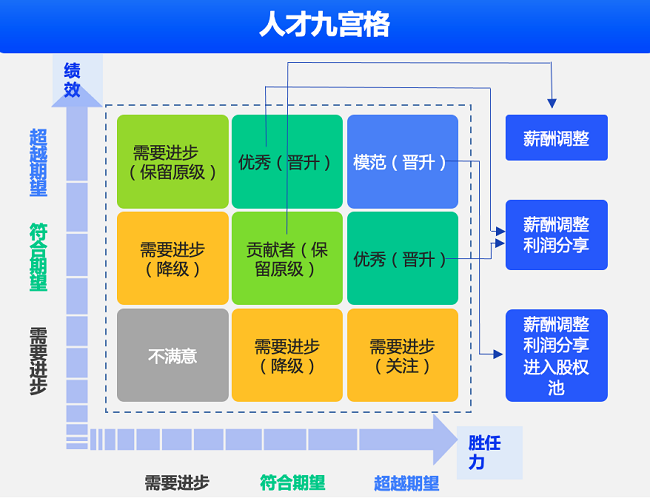 除了企业人才组织的整体数据意外,致远互联薪事力人力云推出了人才盘点功能,帮助企业进行智能化人才盘点,精细化了解根据员工的素质、业绩评级,并有效评估员工在工作中的优势和不足,以及以及在行业的发展潜力与方向等,可以有效帮助企业进行员工工资分析、绩效考核、薪酬福利管理、员工晋升、员工培训与开放等提供有效数据支持,帮助企业进行可行性计划方案。