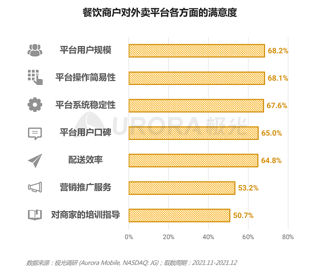 餐饮商户对外卖平台的用户流量与系统运维评价最高
