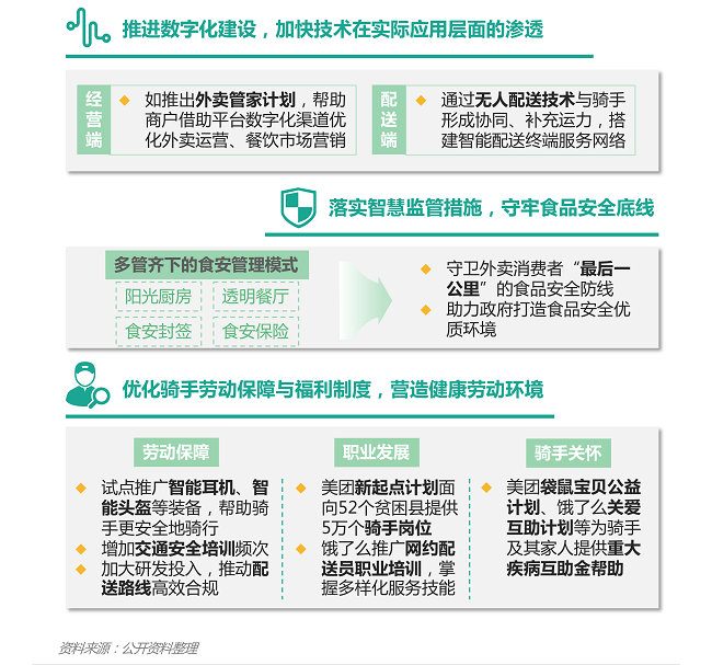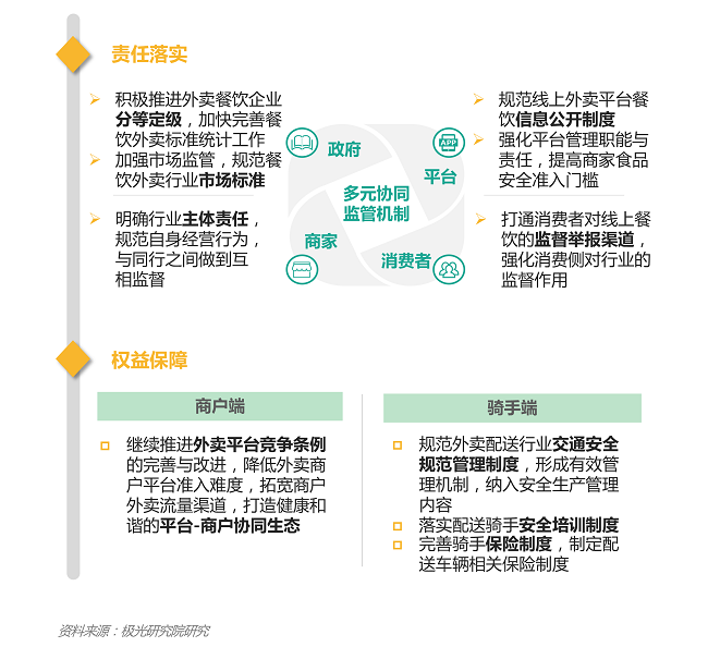 • 衣食住行作为民生头等大事,针对餐饮外卖行业,未来在政策上会加强对互联网服务平台的监管,构建多元协同监管机制,严守食品安全红线,同时切实保障消费者、骑手、商家的合法权益,维护新兴业态线上外卖环境的健康与和谐。