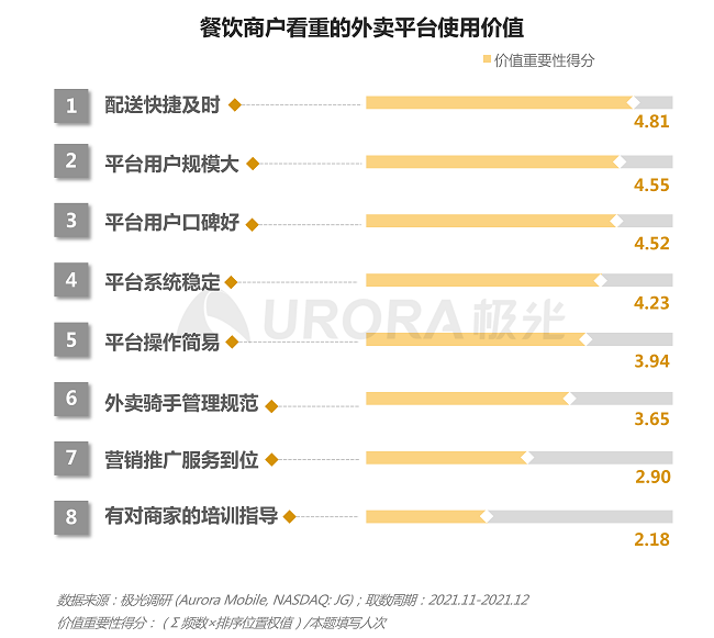 快捷及时的配送和庞大的用户规模成为商户们最看重的外卖平台价值