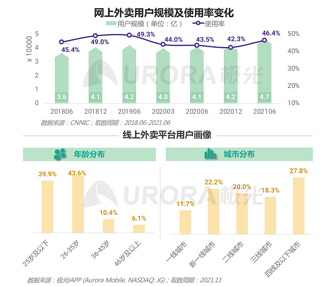 线上外卖用户规模持续扩大 ,下沉城市用户占比超一线城市