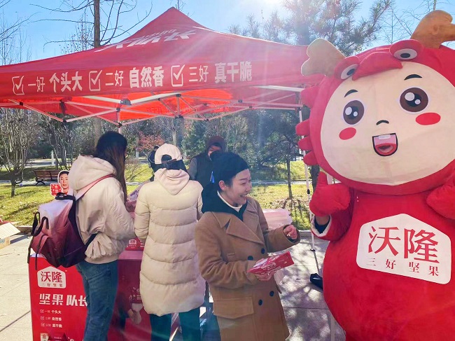 活动中,沃隆品牌IP形象“小隆人”带着优质坚果产品走进校园,丰富师生校园生活的同时,也传播了沃隆品牌一直以来所坚持的健康文化。