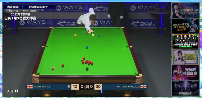 北京时间2022年1月5日,斯诺克元老英锦赛拉开战幕,虎牙直播全程高清转播。斯诺克冠军联赛正在如火如荼进行中,而元老英锦赛也节奏刺激,16位经验丰富的老将角逐元老英锦赛,包括现役职业球员肯·达赫迪、吉米·怀特、亨德利、彼得·莱恩斯、大卫·利里、巴里·平奇斯等人。