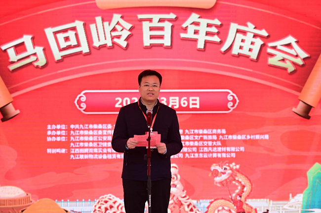 九江市政府党组成员、副市长熊晋喜宣布2022年马回岭百年庙会正式开幕