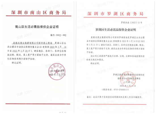 麦德龙积极配合各地政府部门的防疫工作,经与各地商务局沟通,麦德龙长春市2家会员店、深圳罗湖区、南山区会员店成为“生活必需品保供超市”,保供工作得到政府大力支持。