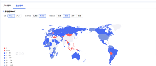 MLBB2016年上线伊始,便面向全球发行,目前游戏以23种语言 面向全球200多个国家和地区发行。在MLBB的畅销榜分布图上,能看到除了强势的东南亚地区外,MLBB在中东、北非、拉美、欧洲等地区也有很厚的用户基础。
