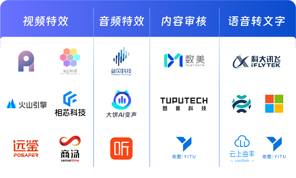 当元宇宙、AIGC 等新技术、新概念推出后,也催生出实时互动场景更多创新的玩法和可能性。实时互动开发者在搭建新场景时,除了音视频 API 以外,还需要视频特效、实时变声、语音转文字、实时翻译、内容审核等扩展能力的开发和集成,才能搭建最佳体验感的场景玩法。而这些功能开发完成上线至少要耗时几个月,会造成项目周期长、研发资源投入大,也可能会错失产品的最佳市场验证时间。