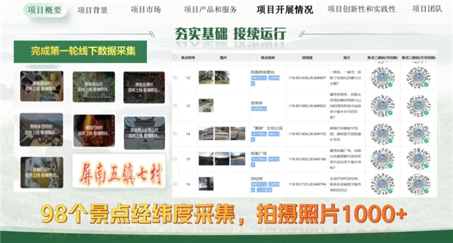 依托实地调研与资源采集成果,实践队建设七个村级文旅资源数据库,系统收录各村景点介绍、便民设施分布、特色游览线路、文旅导览指引等核心实用信息。团队对采集的文字、图片等素材进行标准化梳理与规范化入库,实现七个村落文旅资源的数字化整合与集中呈现,为后续村级AI伴游智能体开发及文旅成果落地转化提供坚实的数据支撑。